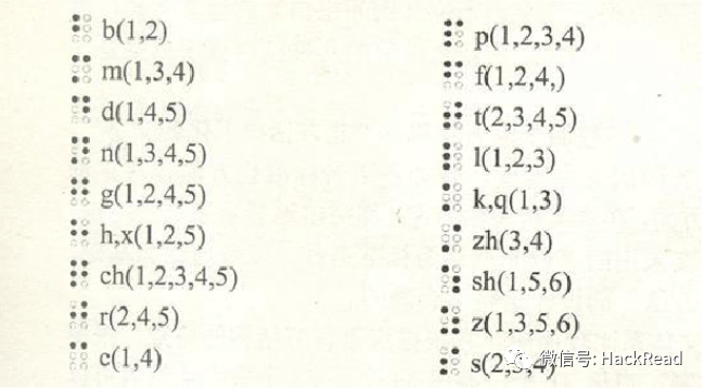 盲文的结构:以左上为起始点,记作1,按从上到下,从左到右依次递增的原则计数。所以