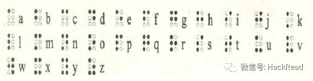 盲文又称点字。国际通用的点字由6个(2*3,两列三行)凸起的远点为基本结构组成,是专供盲人摸读书写的文字符号。由法国盲人路易布莱尔(Louls Braille)在1829发明。