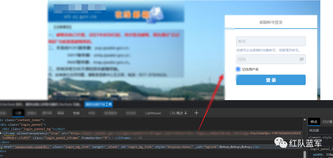 但在获取密码环节出了问题,gophish抓取密码的原理是寻找form表单,获取到其中的input字段。因此很多时候,明明伪造的网站,受害者提交了信息,但却未收到数据,很大可能是因为前端没有构造出符合规定的form表单。此处的原因则是登录使用的是iframe调用的外部资源。