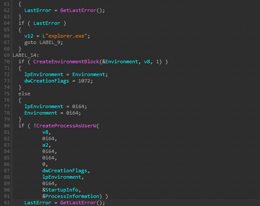 最终使用CreateProcessAsUserW函数调用该.NET可执行文件。