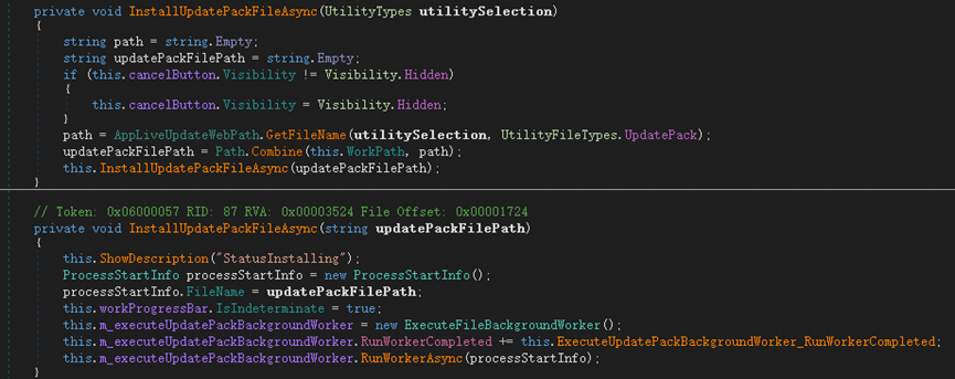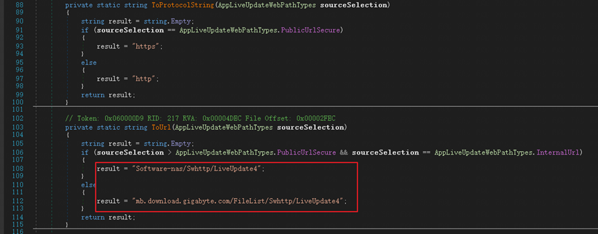 然后该可执行文件在%SystemRoot%\system32\目录下释放GigabyteUpdateService.exe,并将其注册为Windows服务运行,随即从资源段中释放另一个Windows可执行文件,该文件为.NET应用程序,其向服务器请求下载并执行更新程序。