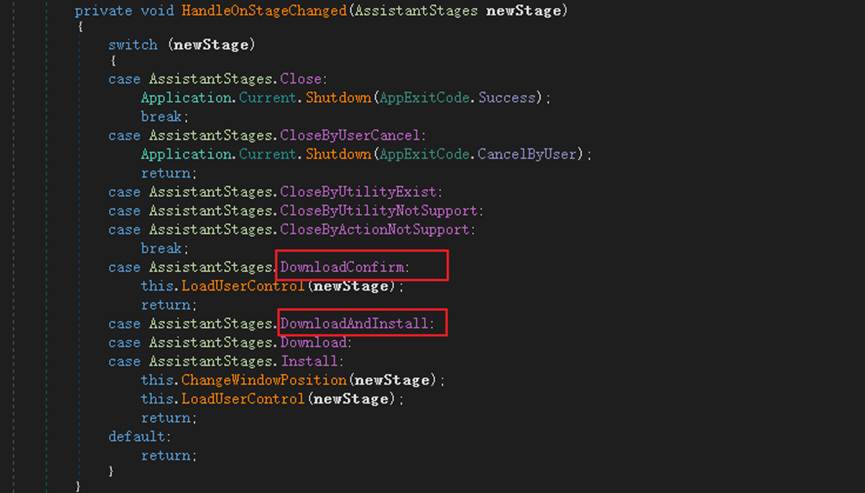 传入的参数为DownloadAndInstall时,向服务器请求下载指定的更新程序,并且下载时拼接的URL可选选项有HTTP和HTTPS。