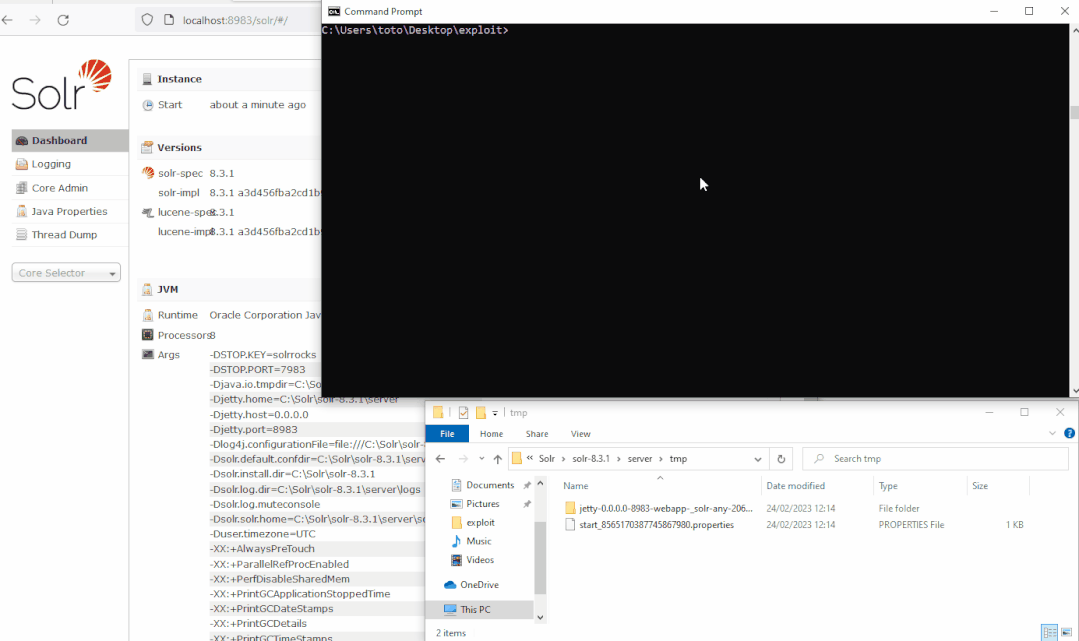 从暴露的 Solr 接口,可以在服务器上获得 RCE。Windows 上的 8.3.2 版之前存在此弱点。在较新的版本中,实施了以下限制: