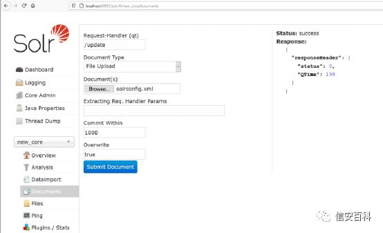 在core中,可以上传文件和发送数据以供后端处理。使用 Solr 提供的测试文件,应用程序对其进行处理,但不会将它们保存在服务器上。但是,当文件的大小超过阈值时,服务器会将完整内容保存在服务器目录 {Base Dir}/server/tmp/ 中的 .tmp 文件中。
