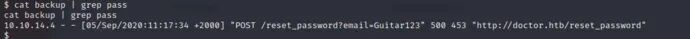 备份日志里出现了这样的内容。由于此处是重置密码页面的日志信息,所以猜测此处所显示的Guitar123是一个密码。