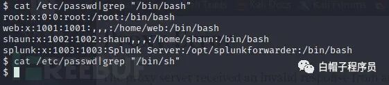 发现该机器上存在splunk、shaun、web、root四个账户。