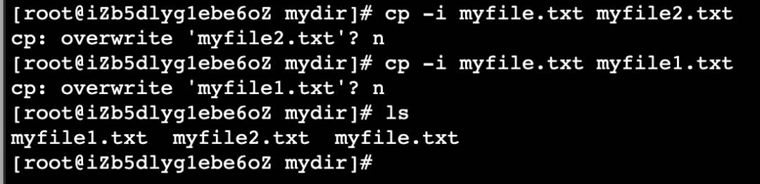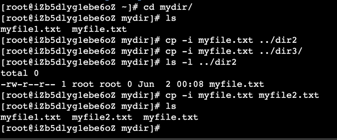 cp file1.txt file2.txt directory/cp -r sourcedir/ destination/cp -i file.txt destination/特别提醒:
