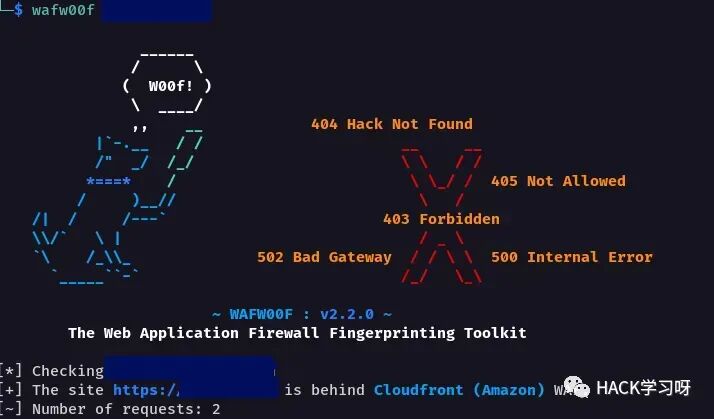 Wafw00f是一个命令行实用程序,可将通常标记的payload发送到给定的域名,并评估Web服务器的响应,以尽可能检测和识别防火墙。