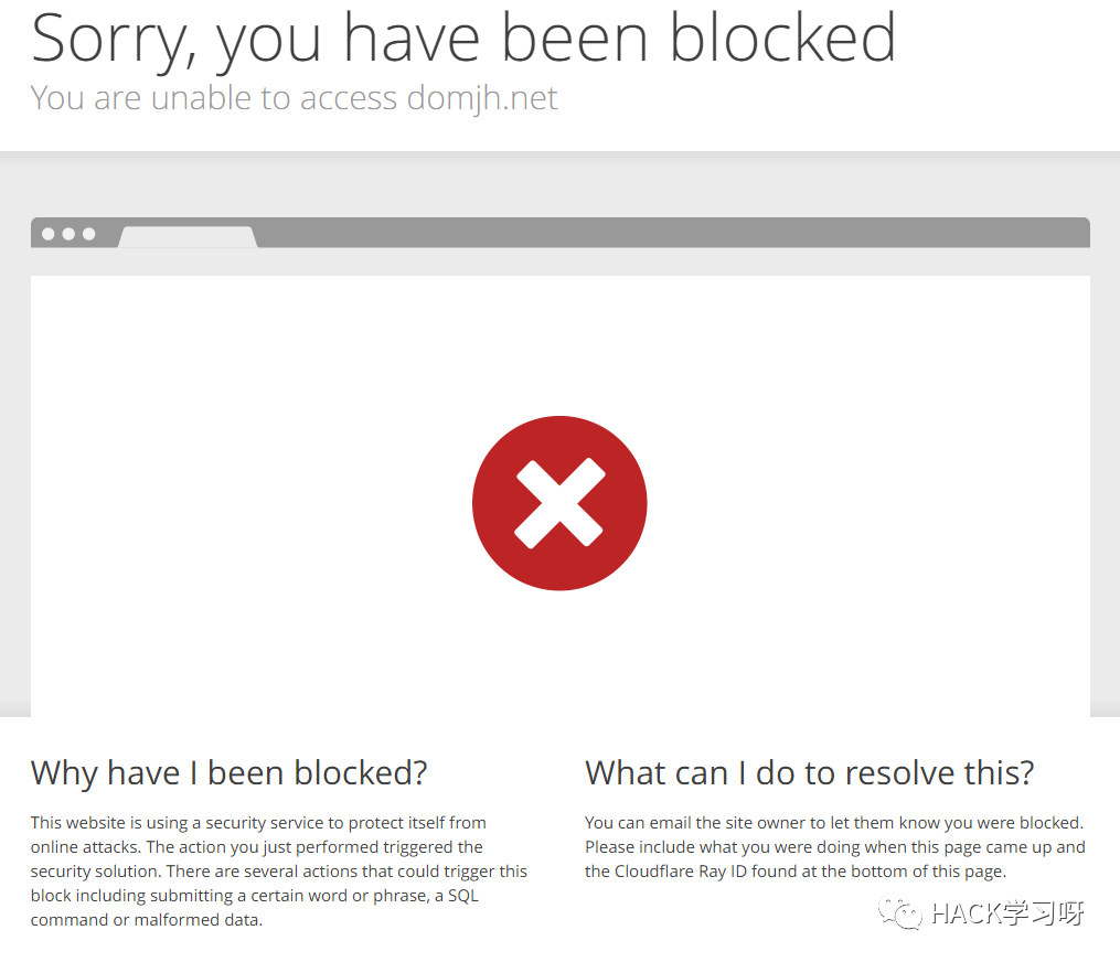对于正在访问的网页,HTTP响应可能与预期的不同。WAF可能会返回它自己的网页,如下图所示,或一个不同的状态代码,通常在400左右。