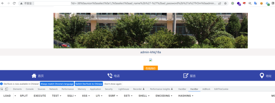 这里使用"+"运算符将Ad_name和Ad_password查询的结果(两个字符串)给聚合连接起来,并返回一个名为"a"的列,其中包含所有管理员的用户名和密码,用"-"分隔。