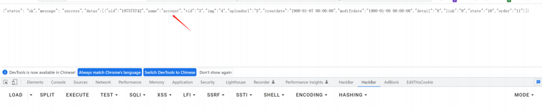 这里使用"+"运算符将account,name和password查询的结果(三个字符串)给聚合连接起来,并返回一个名为"a"的列,其中包含所有管理员的账户用户名和密码,用"~"分隔。