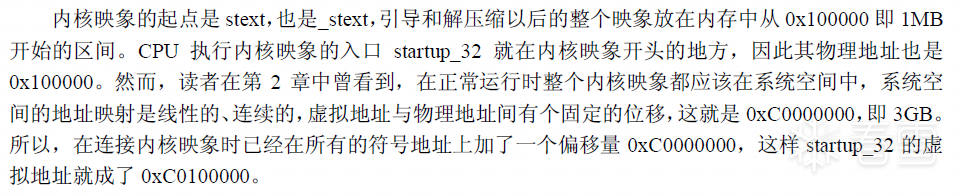 程序中的0xC0100000值,包含2部分:0xC0000000是内核空间的地始虚拟地址,0x100000来自链接脚本,是内核文件加载的起始地址。