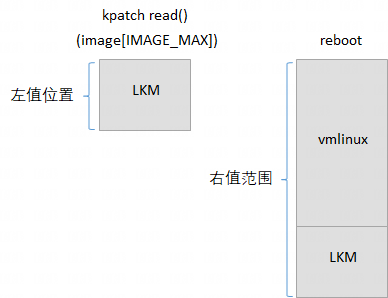 既然是链接器,就要对LKM中的很多内容进行修改,比如根据重定项,将目标位置修改为全局变量运行时的内存地址等,因此,kpatch代码中会有很多赋值语句。为了防止看代码的时候犯晕,有必要事先明确:kpatch是对自己read()的LKM内核进行修改,修改值是在reboot后运行时使用,所以赋值语句的左值位置和右值范围,一定如下图所示:另外,要执行LKM,就要访问LKM的.text、.data等节区,加载到内存后,LKM所在的这块内存,是由谁分配的?