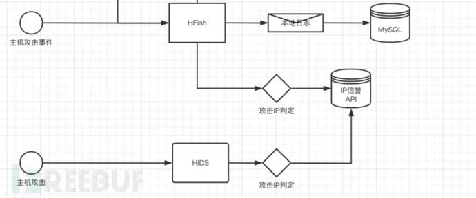 以HFish构建的蜜罐系统为例,下面是HFish蜜罐系统在实践过程中,一个系统关联图。