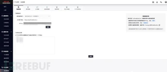 TDP:TDP和HFish同出一家,TDP是流量分析系统,同时提供HFish的接入功能,在HFish相对早期的版本,我们将HFish接入到TDP系统,尝试让HFish威胁日志接入数据库集群,并在某些安全活动使用。TDP对接HFish,接入数据是蜜罐威胁事件日志,并提供蜜罐结点的威胁的攻击统计、威胁事件告警检索功能。接入蜜罐日志后,并不将威胁日志中的IP与威胁情报进行关联,与威胁情报的关联,是在接入日志之前就完成了,所以需要在HFish中接入IP信誉库API。