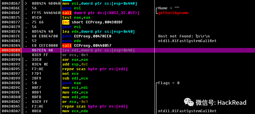 我们看到正如我们上面分析的,我们的 esp 已经跑到了 0xFFFC03E9 ,我们继续往下执行