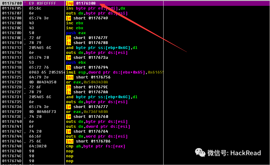 //FF E3 JMP EBX