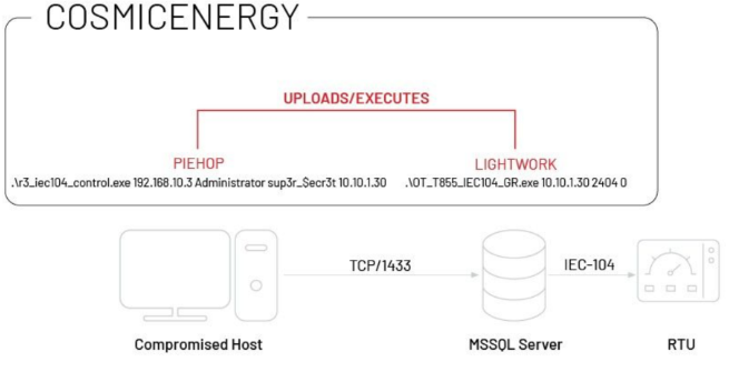 CosmicEnergy是一种新型的工业控制系统恶意软件,它由两个组件PIEHOP和LIGHTWORK组成。PIEHOP是使用Python编写的工具,通过与远程MSSQL服务器交互,上传文件并向远程终端单元(RTU)发送远程命令。PIEHOP依赖于LIGHTWORK来发送IEC-104命令,以控制RTU的状态,并在发送命令后删除可执行文件。LIGHTWORK是使用C++编写的工具,通过TCP连接实现了IEC-104协议,可以修改RTU的状态。研究人员发现,CosmicEnergy本身不具备侦查功能,因此操作者需要进行内部侦察以获取环境信息。综上所述,CosmicEnergy的出现表明攻击者利用之前攻击的经验开发了新的恶意软件,对受影响的电力系统资产构成潜在威胁,因此需要采取预防措施。