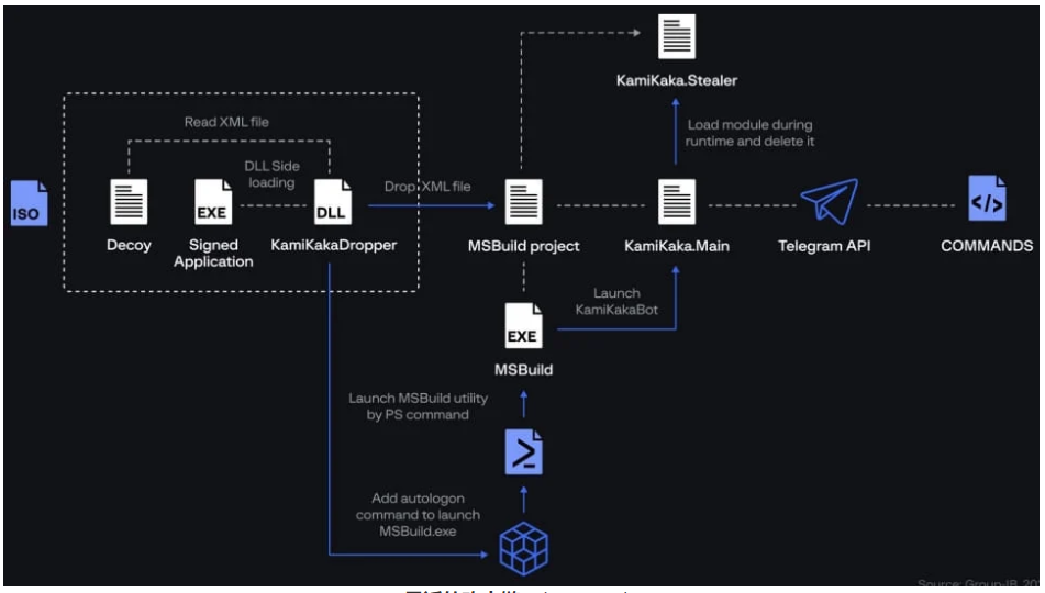 Dark Pink APT 组织在 2023 年来继续保持活跃,瞄准印度尼西亚、文莱和越南的政府、军队和教育组织展开攻击。该威胁组织自2021年年中以来一直保持活跃状态,但直到2023年1月才被Group-IB报告首次曝光。最近的攻击中,Dark Pink 展示了改进的攻击链,采取了不同的持久性机制,并部署了新的数据泄露工具。此外,威胁组织还利用 PowerShell 脚本进行横向移动,识别并与网络中的SMB共享交互,进一步扩大攻击范围。Dark Pink APT组织主要通过鱼叉式网络钓鱼进行初始感染,并利用DLL侧加载启动后门程序"TelePowerBot"和"KamiKakaBot"。然后使用 PowerShell 脚本进行横向移动,与网络中的SMB共享进行交互,以扩大攻击范围。此外,他们还滥用合法软件和开发工具的PowerShell命令,利用DropBox上传和通过临时端点进行渗漏等方法进行数据泄露,并使用PUT方法将文件上传到外部地址,并通过创建新的 WebClient 对象实现数据泄露。来源: