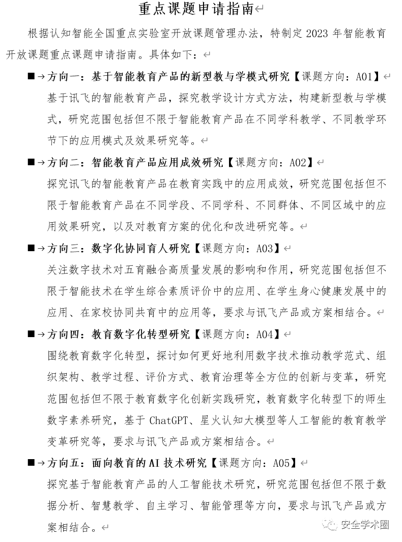 (3)智能教育研究中心将会组织专家按《认知智能全国重点实验室开放课题管理办法》要求进行项目评审,具体事宜另行通知。