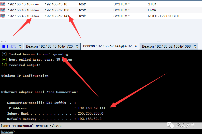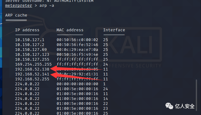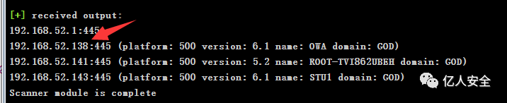 用模块扫描一下存活的主机 命令 run post/windows/gather/arp_scanner rhosts=192.168.52.0/24