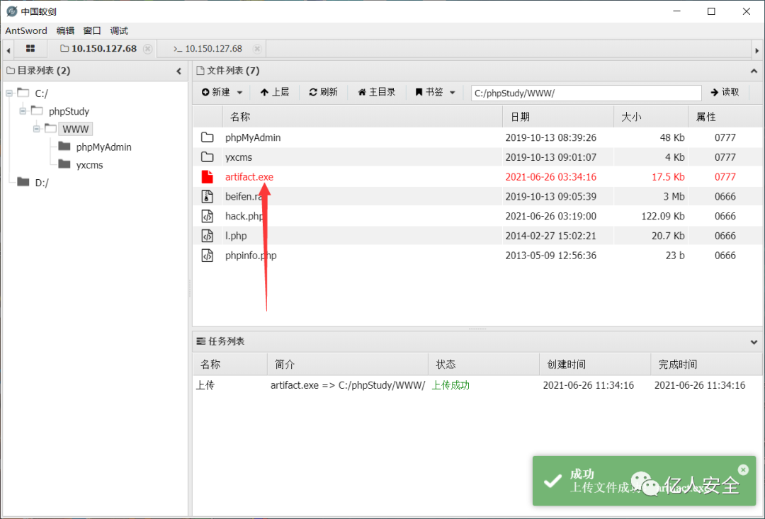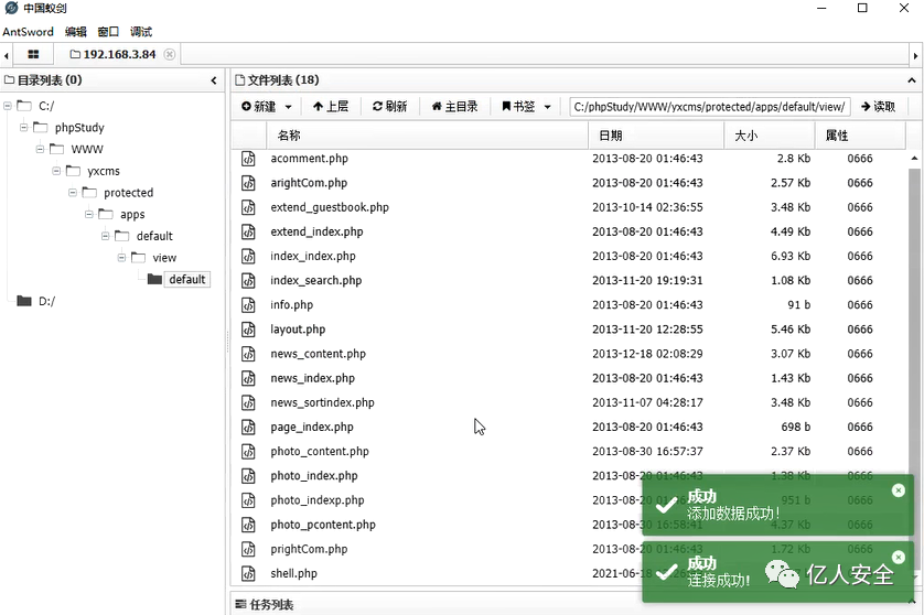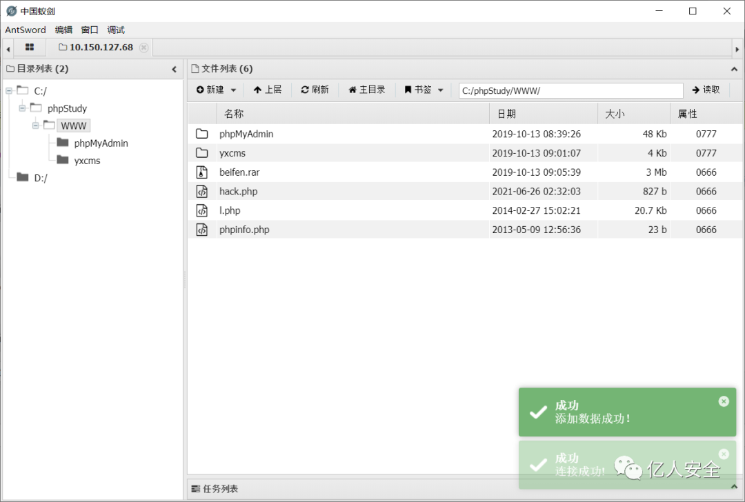 一句话成功写入 打开蚁剑 进行连接