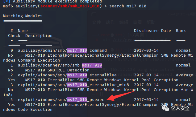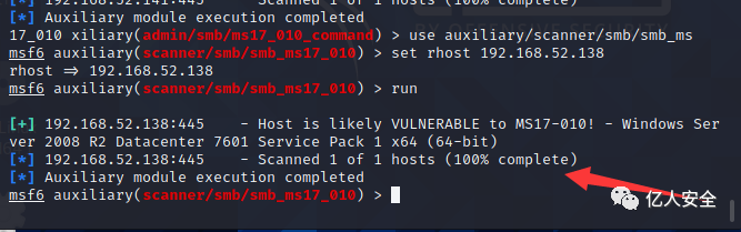 命令:use auxiliary/scanner/smb/smb_ms17_010