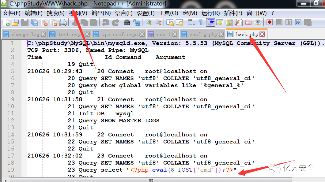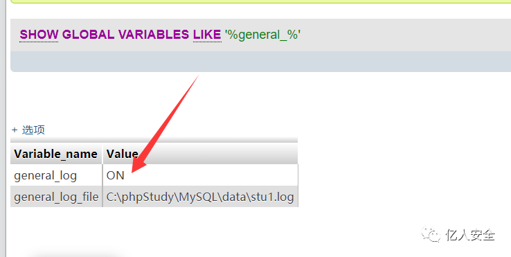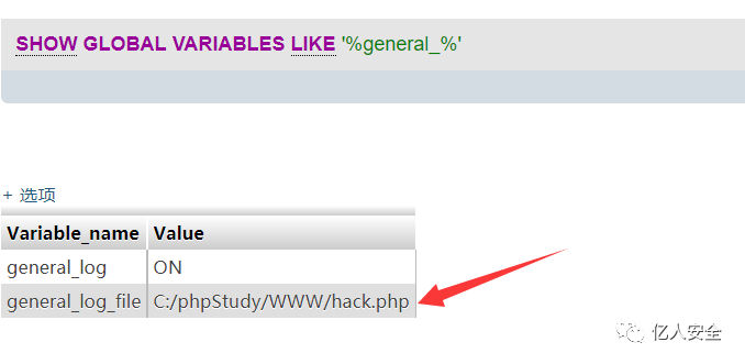 修改路径 命令 set global general_log_file = 'C:/phpStudy/WWW/hack.php'