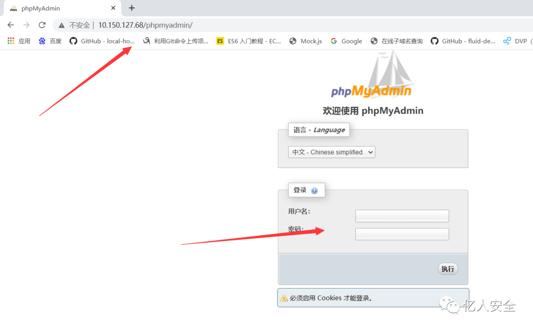 直接进到phpmyadmin界面 然后就可以用 弱口令进行测试 root root
