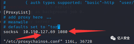 然后查看配置文件是否一致 命令 vim /etc/proxychains4.conf