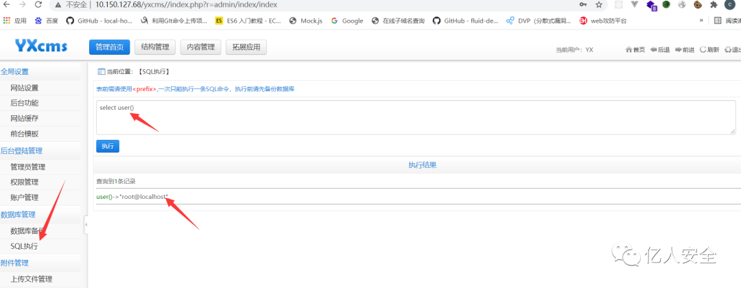 发现sql执行 root权限 就可以和上面一样 试试直接写入一句话 或者 用全日志写入一句话