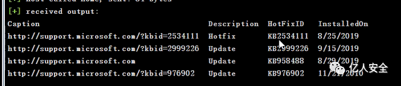 然后就可以直接用cs 进行目标的信息收集 例如收集目标打的补丁