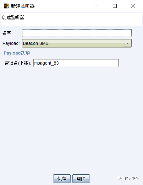监听器选择刚才创建的 smb beacon,会话也选择对应的 smb beacon 的会话: