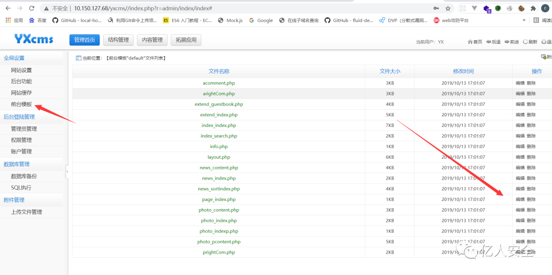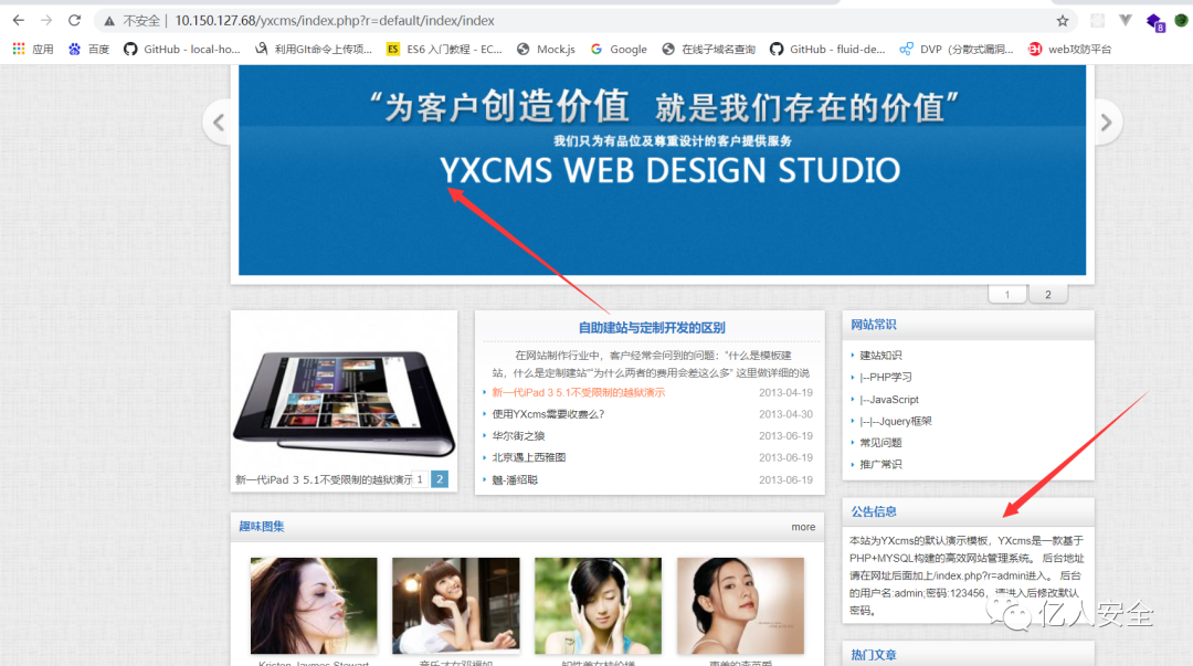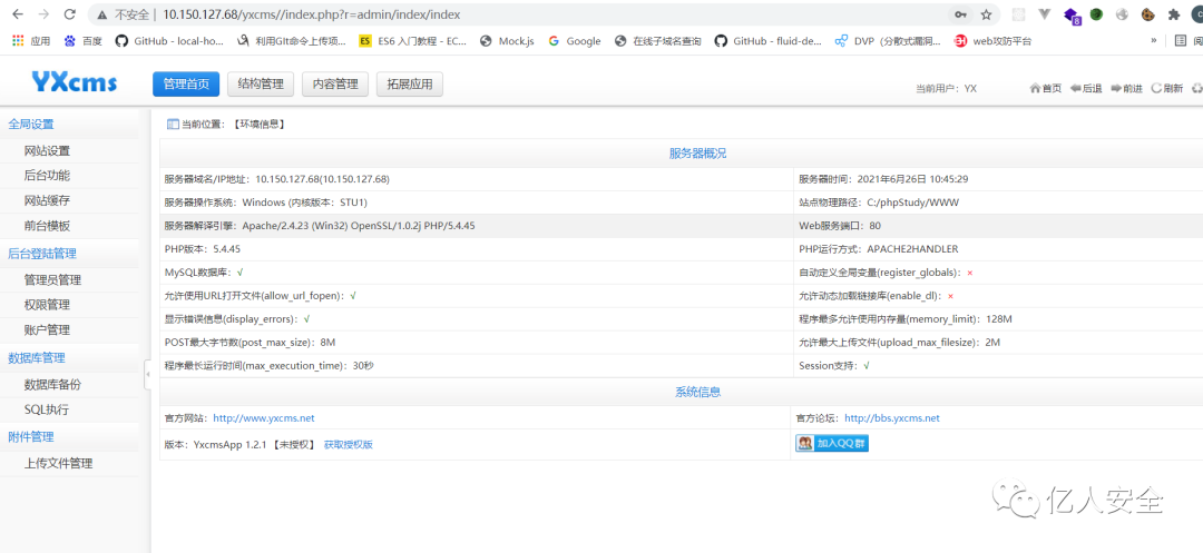 发现还有一个yxcms的 应该是有一个页面的 用浏览器打开