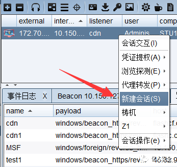 然后用cs新建会话 选择设置的MSF监听器