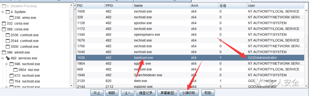 选择 GOD\Administrator 的 token 盗取: