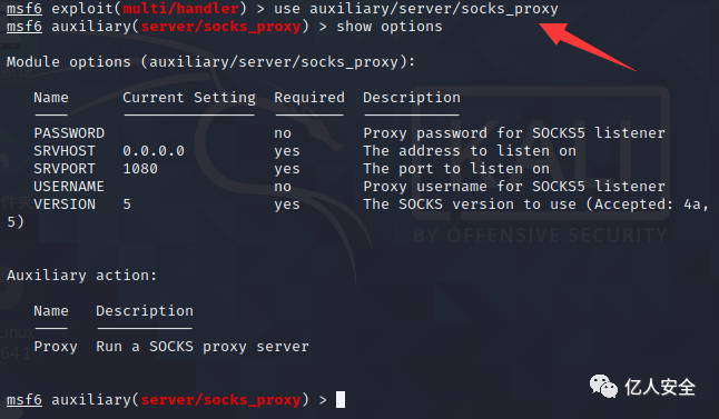 命令 use auxiliary/server/socks_proxy