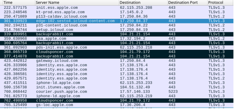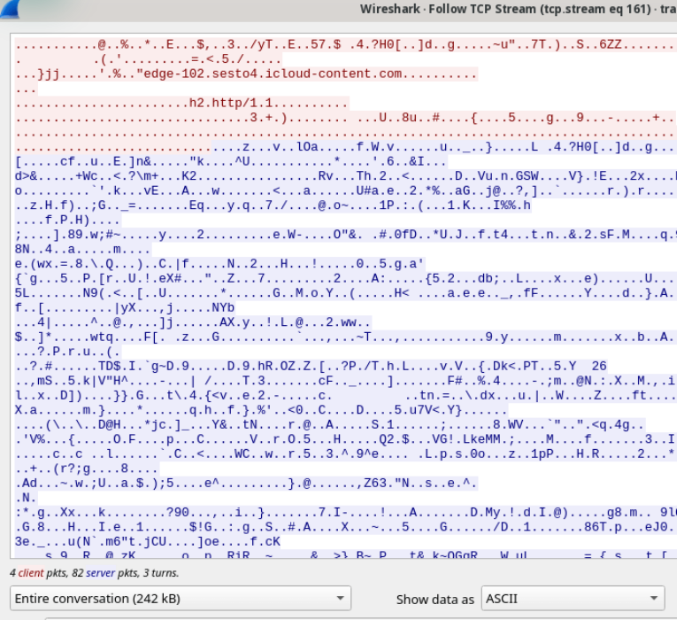 iMessage附件是通过HTTPS加密和下载的,唯一可以使用的隐含指标是下载的数据量,约为242 Kb。