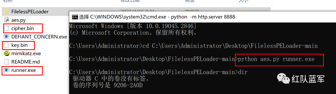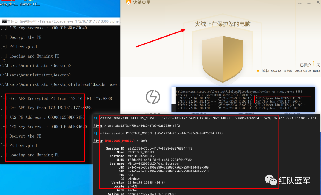 上传 FilelessPELoader.exe 至目标主机,通过以下命令网络分离加载 Stager
