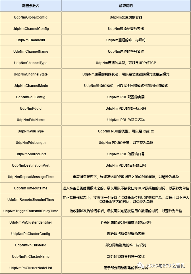 图9 UdpNm NM报文接收时序 UdpNm配置参数说明 如下图10所示,小T将较为重要的配置参数总结如下,以供大家参考: