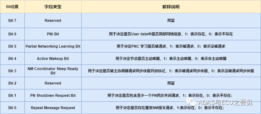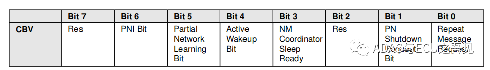 图6 UdpNm报文格式 如下图7所示解释了各CBV域各bit位所代表的具体含义: