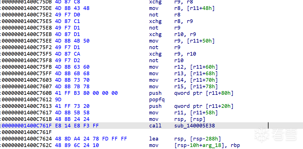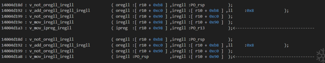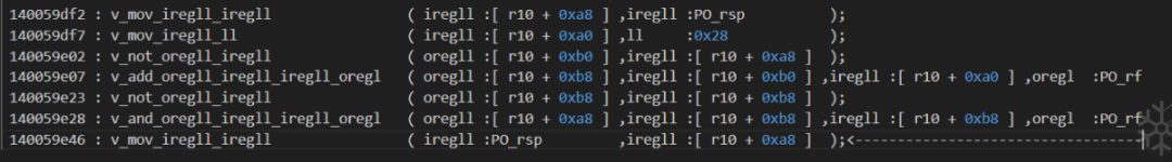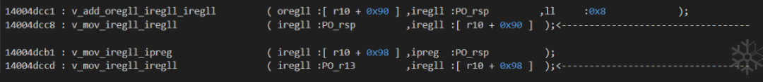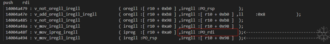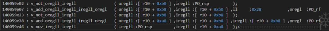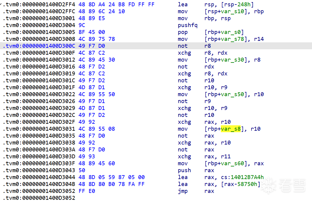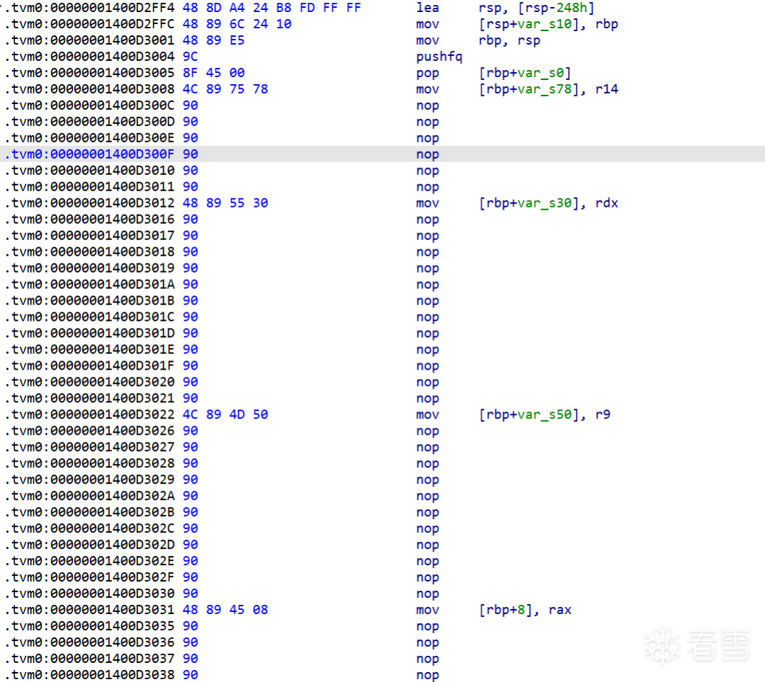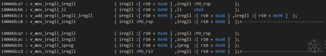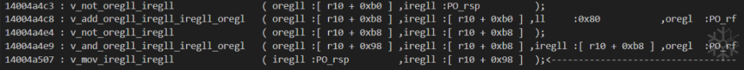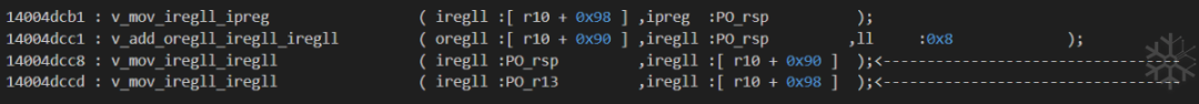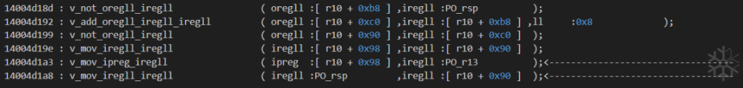 idapython/deTvm.py . tvmToAsm.setASMOpcode_1()14004a4c3 : 将 [r10 + 0xb0] 标记为 [not,PO_rsp,False]
