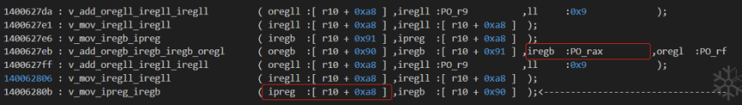 因为 [r10 + 0xa8]类型为 ipreg,且8bit宽度