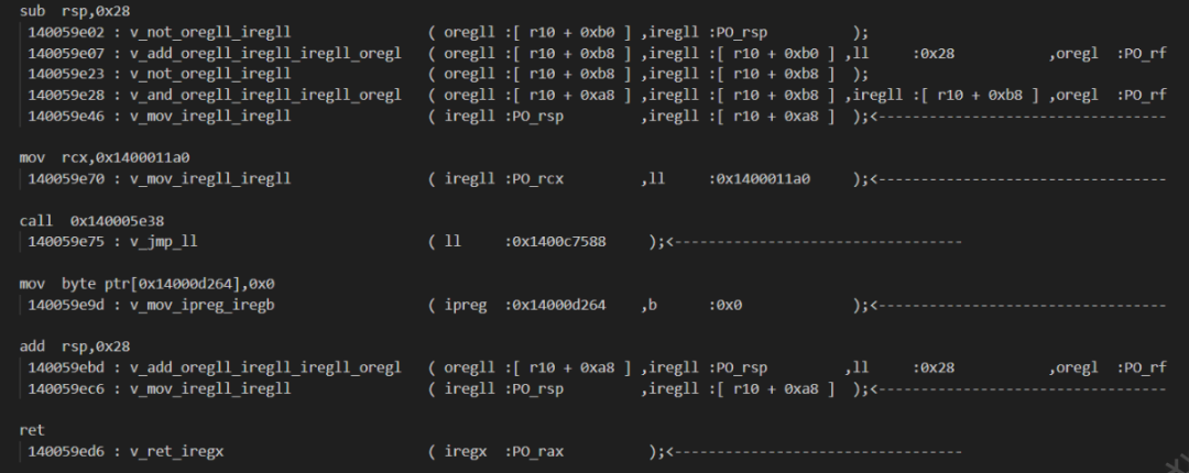 #上一个例子的 函数 0x140001250 它的 V_RIP 就是 0x140059dc2